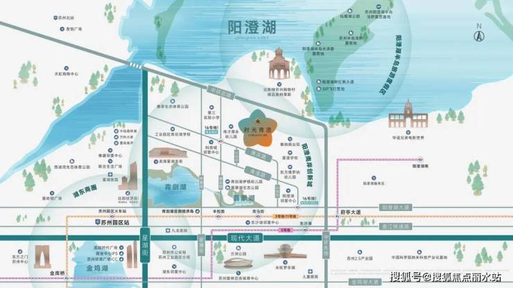 阳澄湖、青剑湖、翡翠湖围合坐落,阳澄湖湖滨生态体育公园、翡翠湖生态公园等环伺。众多俱乐部资源丰富,聚合成年轻活力的社交秀场。