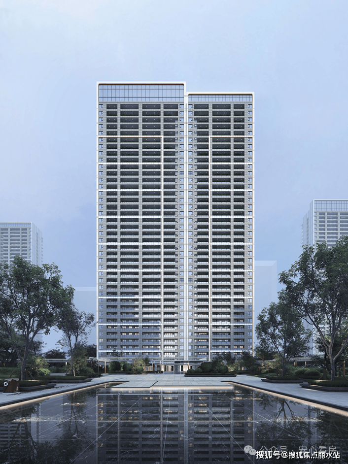 项目外立面采用现代艺术风格,采用大量的高反玻璃和铝板设计,局部装饰线条和香槟金铝板的造型,呈现出一种超脱世俗的简约纯粹之美。