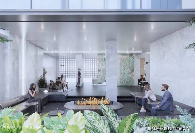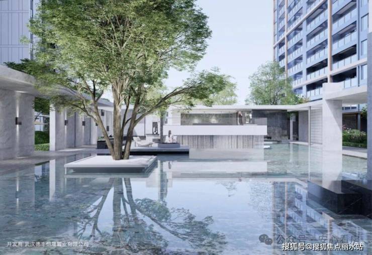 松弛感:中心“水瀑光院”水波荡漾,心绪自轻松