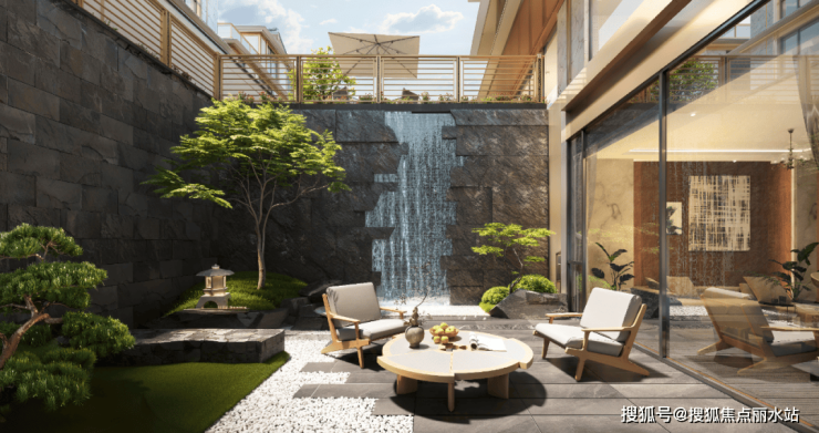 不仅如此,帝京赋以宋代名画《溪山行旅图》为灵感,形成一进府门怡园、二进人文雅园、三进山水游园的诗意画卷,三重递进间,随处可见的流水叠瀑、名木奢石,院墅仿佛被山水层层围合,步入其中,恍然入画般。