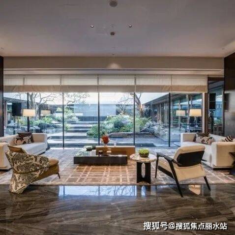 穿过恢弘大门,不经意处皆是百年乌桕、日本黑松等珍贵名木以及普拉达绿奢石,巴西黑金沙等奢材。洄游式四方游廊,营造出立体流动,层层递进的空间结构,松与泉、石与水巧妙结合,宋式园林的精髓被展现得淋漓尽致,置身其中可感受到引人入胜的行进动线。