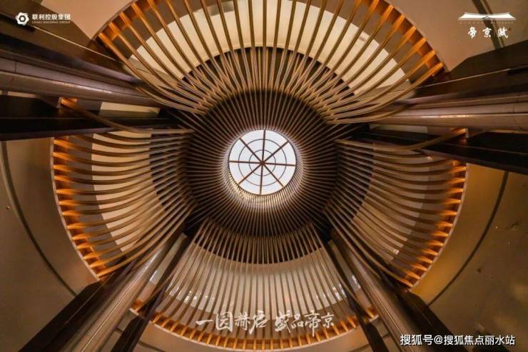 踱步文物藏馆,处处可见低奢与艺术的共生。以“天圆地方”的思想为设计理念,构建出奢华透光的超级星空穹顶,搭配木饰面书卷格栅,雅致天成、威仪尽显,让人文气韵在空间中得以承袭、创新,同时也寓意着天地和顺,万事顺遂。