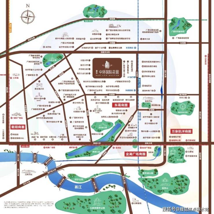 公园配套:南宁市人民公园、南宁市金花茶公园、南湖公园三座大型公园环伺,享受繁华都市中的城市绿肺。