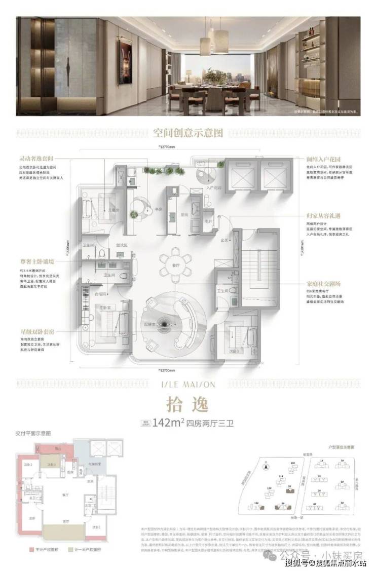 从142平的示意图看,客厅、餐厅、厨房等“动区”集中联动,卧室作为“静区”相对集中,动静分离明确,减少了相互干扰。四房三卫的配置,满足多代同堂或二孩家庭需求。
