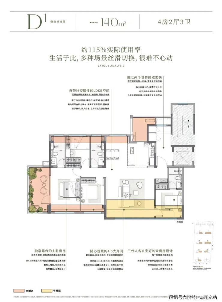 本次首开的约140㎡舒居空间,堪称是为桥北改善人群量身定制的“王炸”之作。
