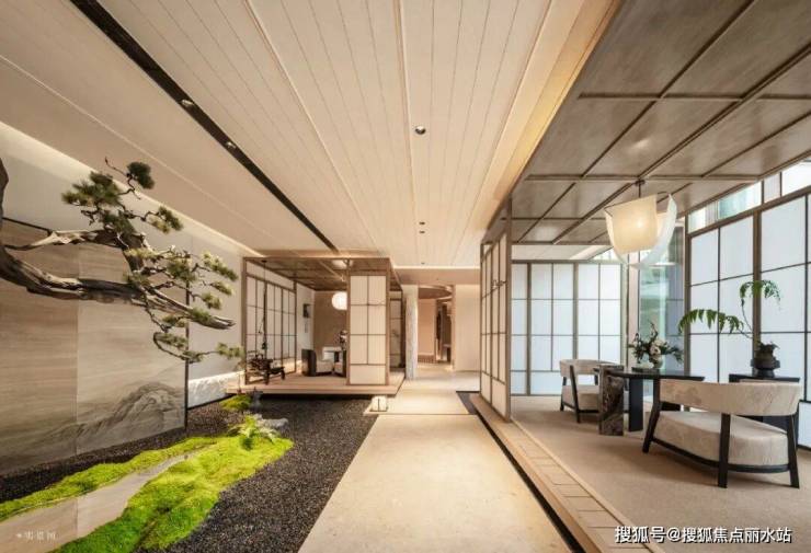 景观打造上更是别具匠心,以悬瀑水院、下沉庭院、空中露台带来三重庭院,层层递进营造出闹中取静的自然谧境,带来立体园林的松弛感。