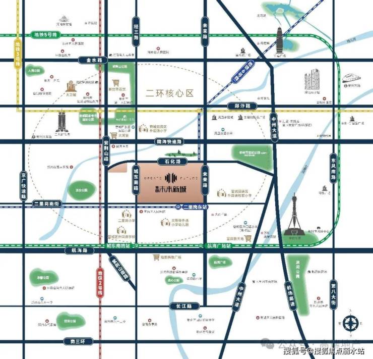 立体交通:2/5/6号线三地铁加持,步行约300米即达6号线二里岗东站(在建中)、5站CBD、7站北龙湖,临未来路等7大主轴,高效通达全城