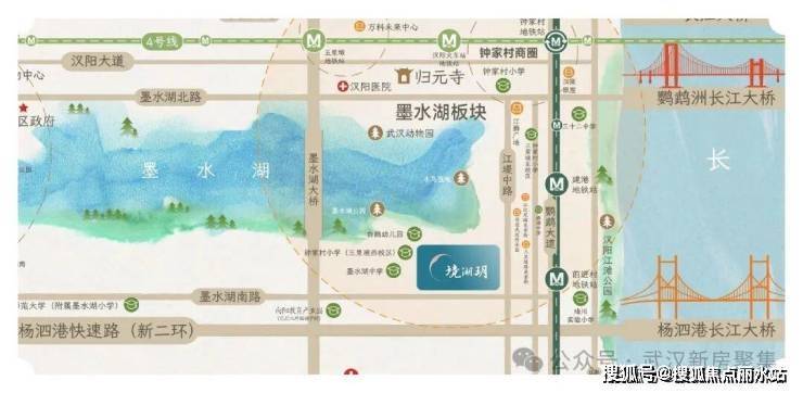 境湖玥位于汉阳区江堤中路与墨水湖南路交汇处,同时占据了2.5环内、二环旁的核心地段。