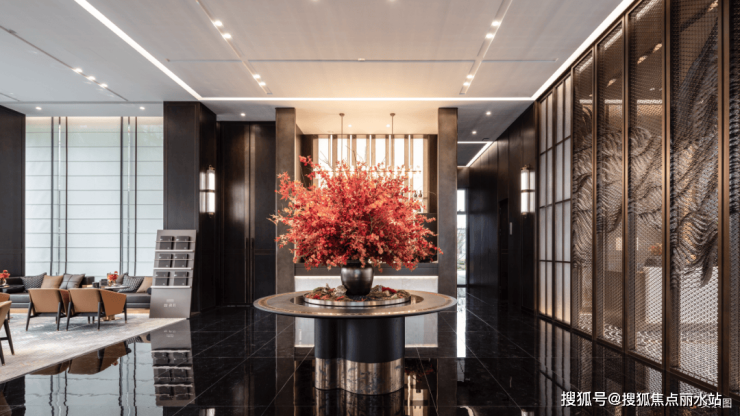 和川高度重视业主归家体验,以充满仪式感与尊贵感的归家大堂,礼遇业主每次归家。和川提取“山形纹路、鱼鳞纹”等元素,应用到归家大堂设计中,与大规格玻璃格栅相呼应,尽显典雅。
