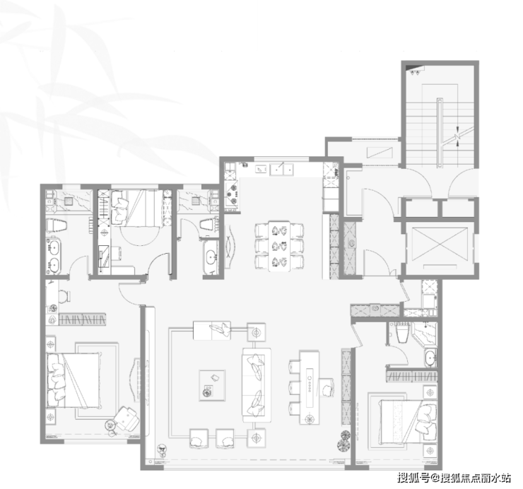 建面约170㎡产品打造3+N室两厅两卫,整体 约15m面宽尺度,纳藏更多清风暖阳。LDK洄游空间,承载多元生活场景。除奢华主卧套,还配有南向次卧套,相互独立,给家人更多私密和尊享。