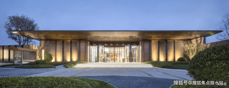 和川大门整体宽约42米,高约6米,线条简明,恢弘气派。府门前景,姿态挺拔的朴树及红枫摇曳生姿,与台地水景相互呼应,时刻恭候每位业主家人归来。