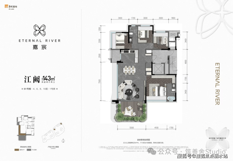 建面约143㎡方厅户型,不可复制的四重“独创性”: