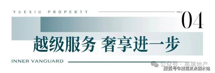 [越秀服务 中国物业服务力百强企业TOP11]凝聚30余年专业管理经验,致力于成为“客户信赖的智慧服务领导者”,为越秀·金水云启提供三重高定服务,重构先锋服务精神。