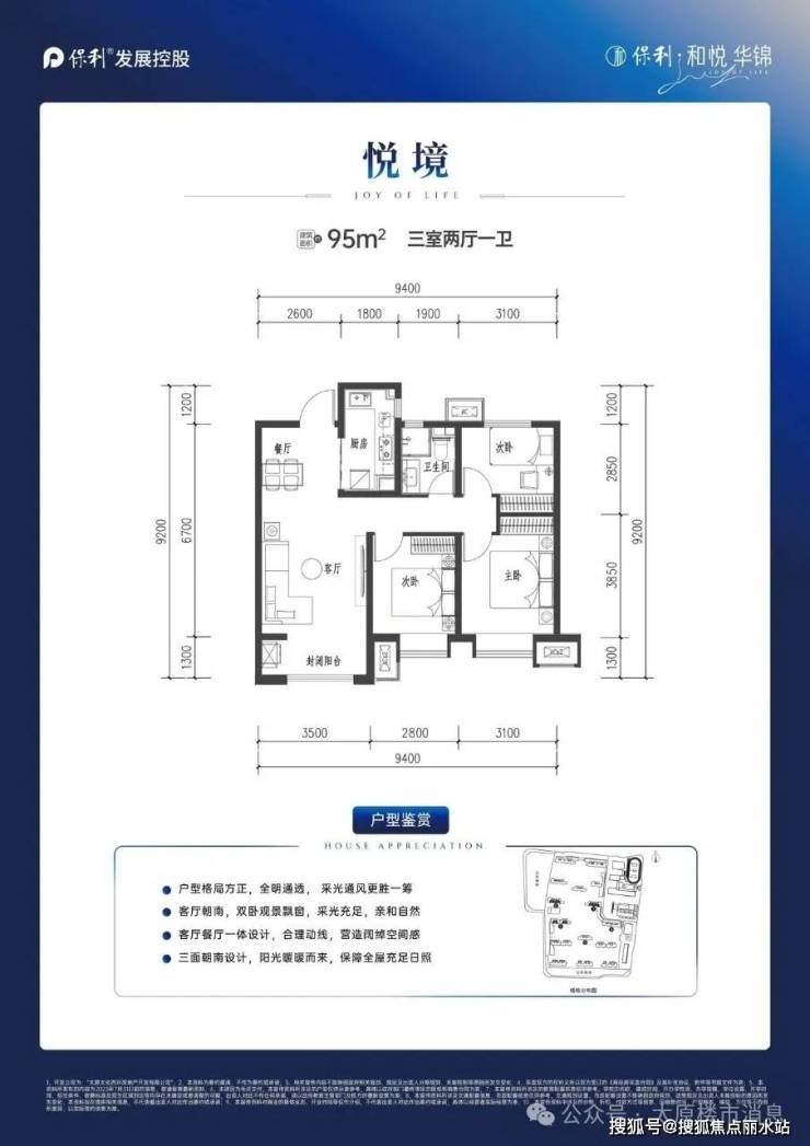 95平,均价9400元。