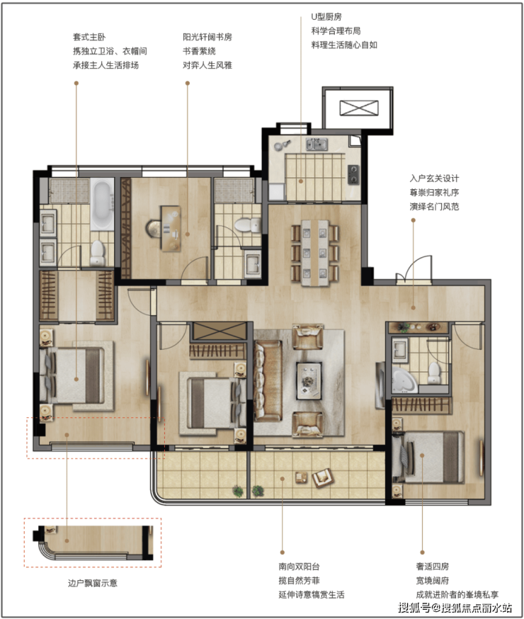 ▼建面约168㎡四房两厅三卫