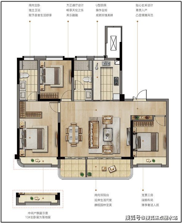 三玻两腔系统窗,提升密封性、保温性、隔音效果。