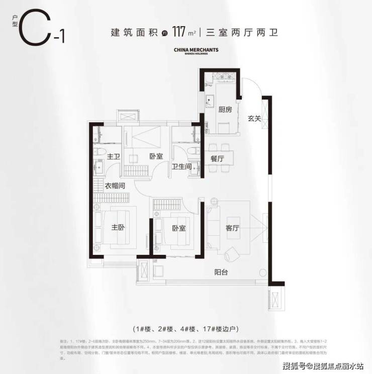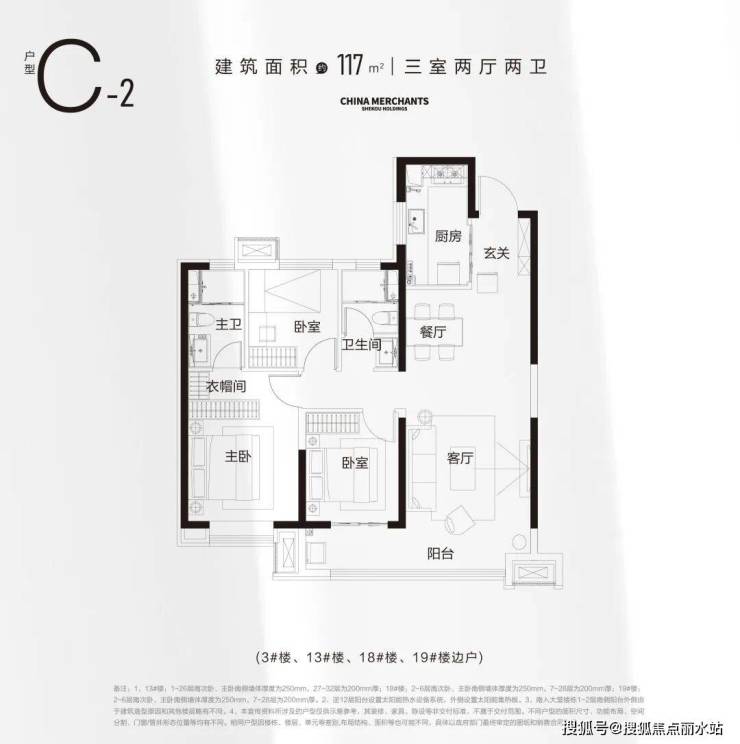 >建面约117㎡ 三室两厅两卫(客厅通透大尺度“无垛设计”拓展人生境界)