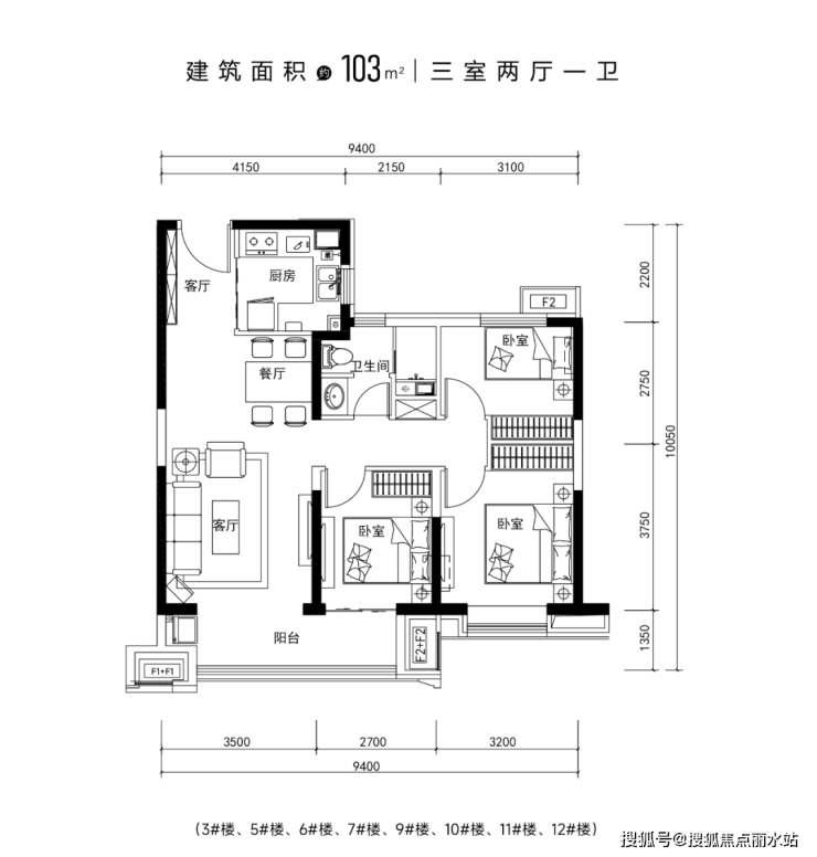 >建面约103㎡ 三室两厅一卫