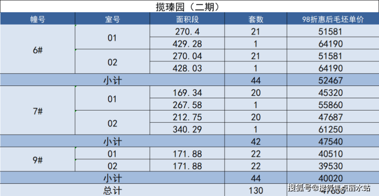 二期6#东、西边套的价格与一期5#的东边套的价格持平。