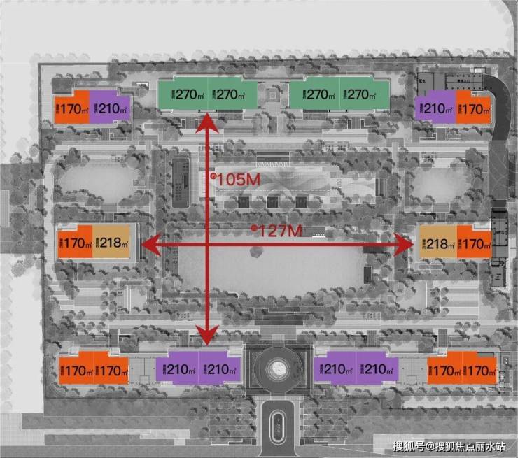 二是产品更宜居。温州市区10年未见的围合布局,南北楼间距最大约105米,东西最大楼间距甚至达约127米,围合出超万方中庭。这在寸土寸金的滨江CBD,何其难得。