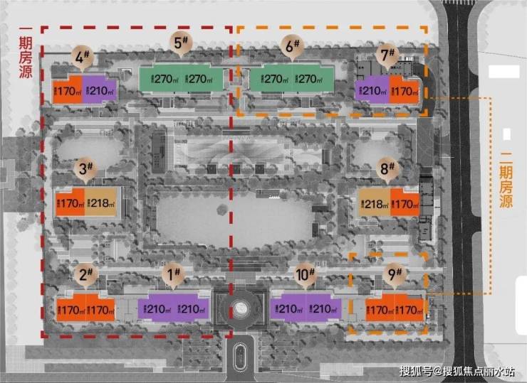 9#也是项目南向首排中,最后一幢建面约170㎡户型,往后门槛提到了建面约210㎡户型(10#)。