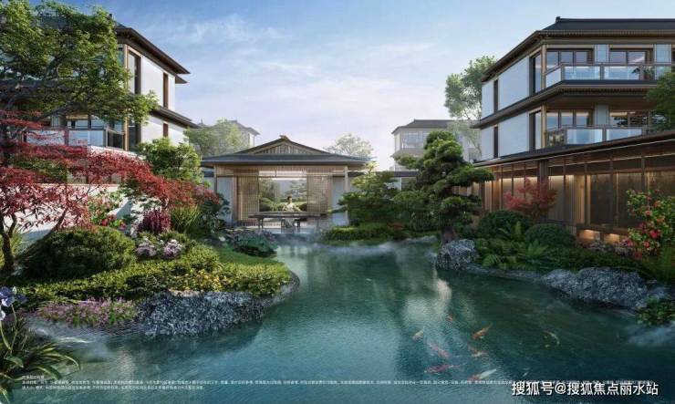 景观园林方面,其设计灵感来源于唐代大师李昭道《曲江图》,营造了七境归家礼序、五景人文意境。