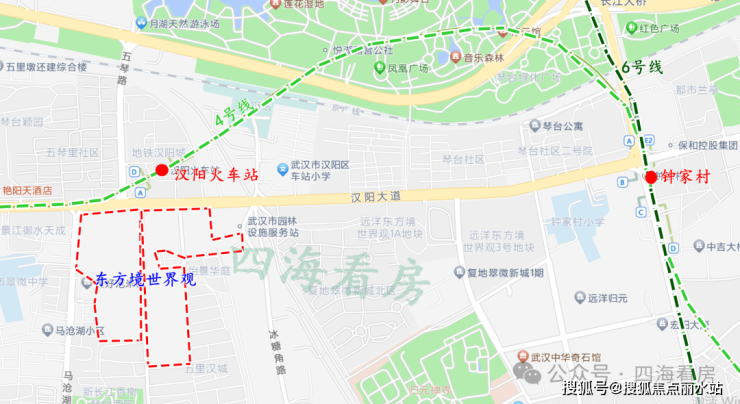 地铁:项目距离地铁4号线汉阳火车站站最近,三期、四期过个马路就到,在售二期过去差不多400米左右,也很近,4号线可以在钟家村站与6号线换乘,同时也可以在王家湾与3号线换乘,辐射汉阳宗关、CBD、汉正街、江汉路、中南、楚河汉街等各个商务集中板块。