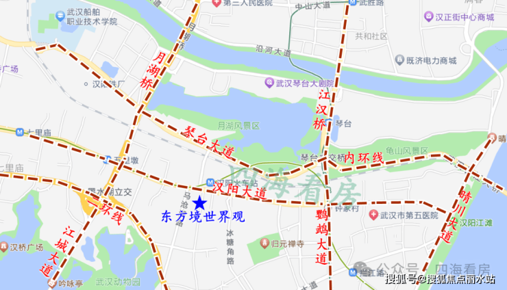 东方境世界观2期位于汉阳大道与五龙路交汇处,在楼市划分中属于汉阳核心钟家村板块,行政划分属于汉阳区,距离内环线1.4公里,属于二环以内,内环边。