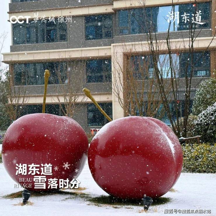 园中的红色艺术装置,此刻也悄然戴上了松软的白帽,红与白的鲜明对比,在素净的世界里透出几分活泼的暖意。