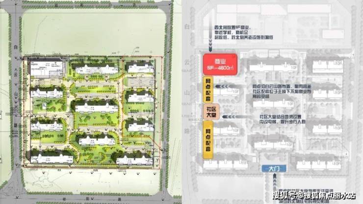 依循浅山地形,构建步步登高的台地住区,致献归家即登台的尊崇体验;沿白云山路充分利用高差,商业网点的设计,丰富沿街城市界面,同时车库高于城市道路,塑造良好的归家体验。