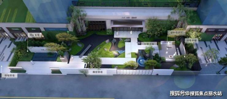 一步一景,每一块景石都谱写着诗意的画卷,给人结庐于自然的闲适感。精致而具有设计感的水景搭配常绿球,不同元素间的相互咬合,体现着刚与柔的艺术碰撞。作为室外洽谈区,满足室内功能的室外场景化,为人们洽谈提供轻松诗意的环境。