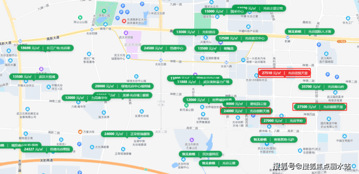 目前光谷的在售住宅价格高一点28000-30000元/平,大多数住宅的价格都是在24000-25000元/平之间。