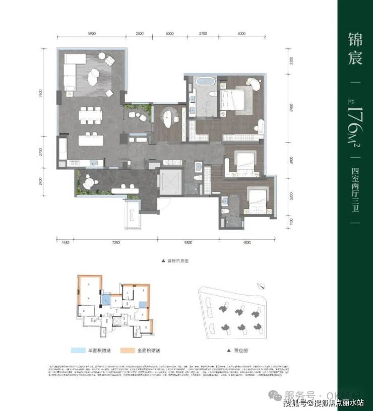 176㎡得房率 室内98%+20平光厅