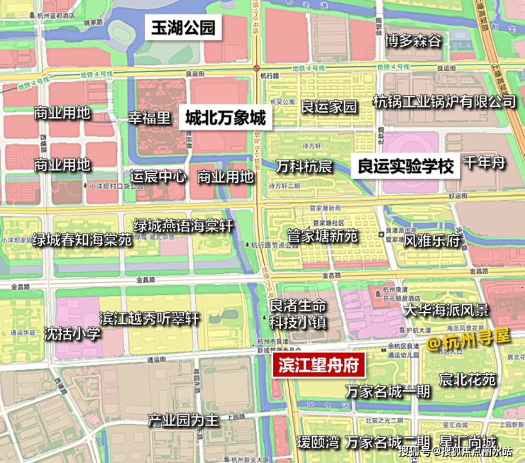 再看项目周边,整体以住宅和产业园为主,东侧为滨江万家名城等小区,北侧为良渚生命科技小镇。