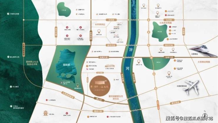 毗邻汾河、晋阳湖公园、蒙山景区、太原古县城、太山景区、国际性综合体育场红灯笼体育馆、太原