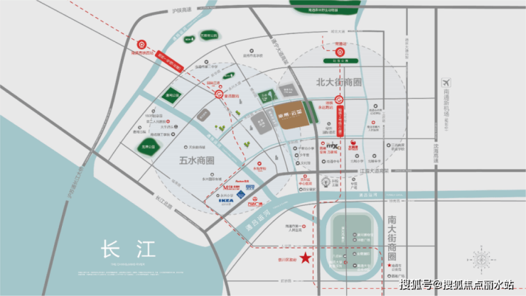 2.5公里范围内,享五水、万象、北大街、南大街四大商圈利好辐射,万象城、圆融堤调、万达、大润发、宜家、山姆、欧尚等诸多商业综合体环伺,商业总体量超过约140万方。
