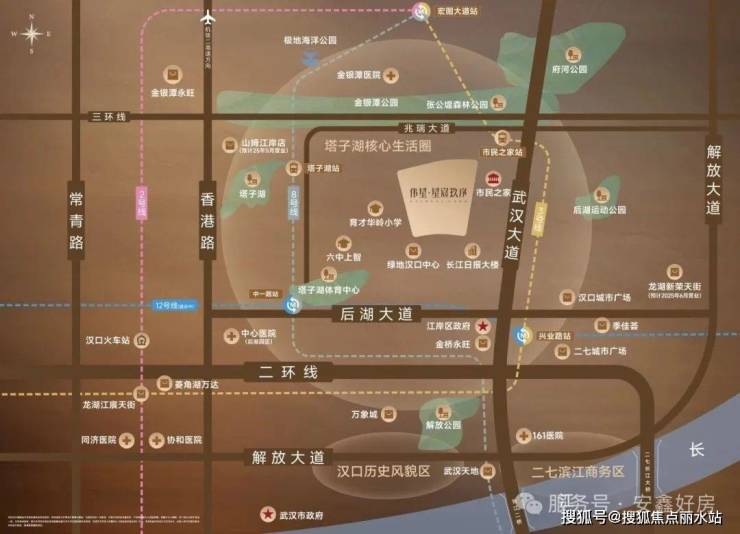 项目位于江岸区后湖板块,距离二环线约3.4公里,距离三环线约300多米,属于三环内。