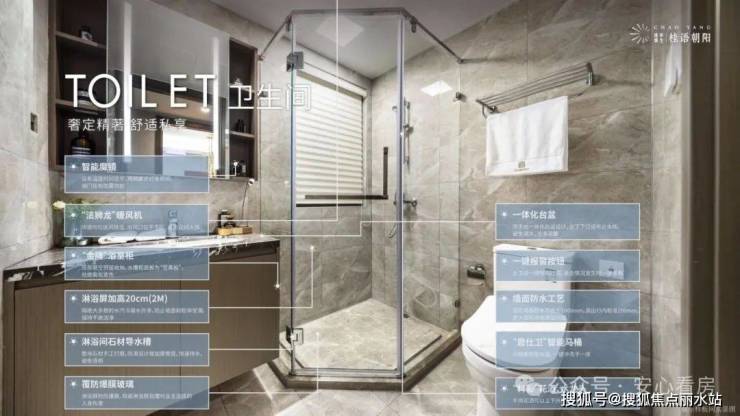 主卫智能马桶盖 / 紧急报警按钮 / 预留防溅插座 / 柔和暖风机 / 主卫防雾化妆镜/镜柜内置插座