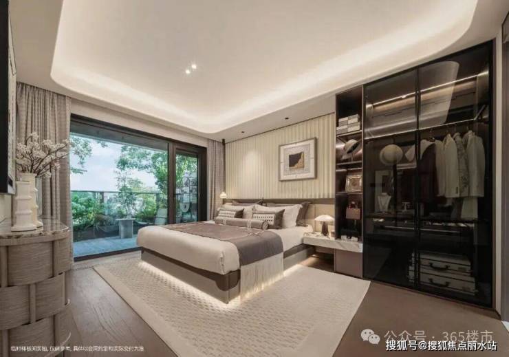 静区的打造同样堪称教科书级别。主卧套房开间约3.6米,搭配独立卫浴和充足的衣帽收纳空间,尊崇感十足。最小面积次卧也能放下大床+衣柜,三面均自由下床。