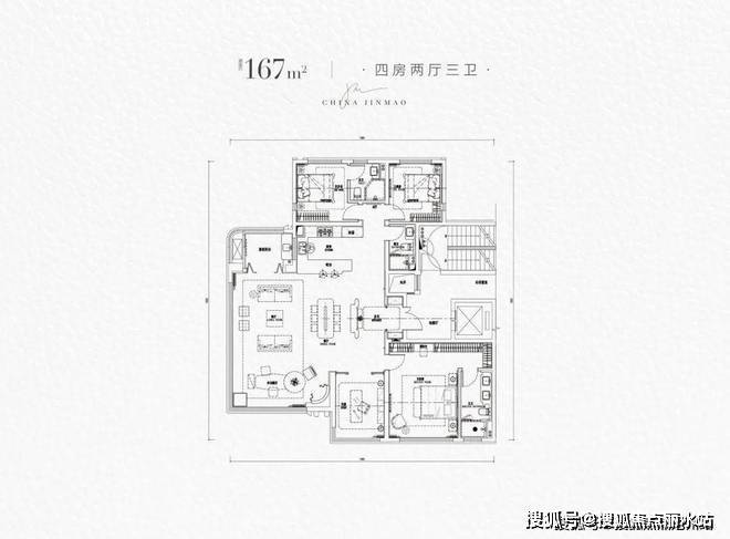 金茂・樾满晴川主推的户型有 109 平的三房,139 平和 167 平的四房,这些户型基本能够满足大部分家庭的住房需求: