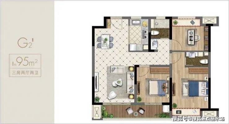 建筑面积约95㎡,3房2厅2卫