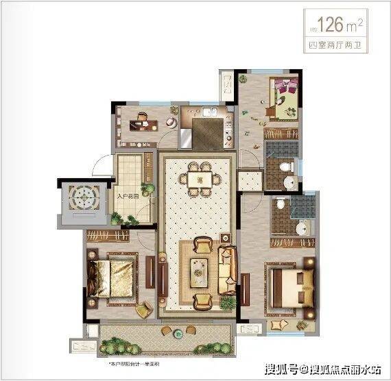 建筑面积约126㎡,4房2厅2卫
