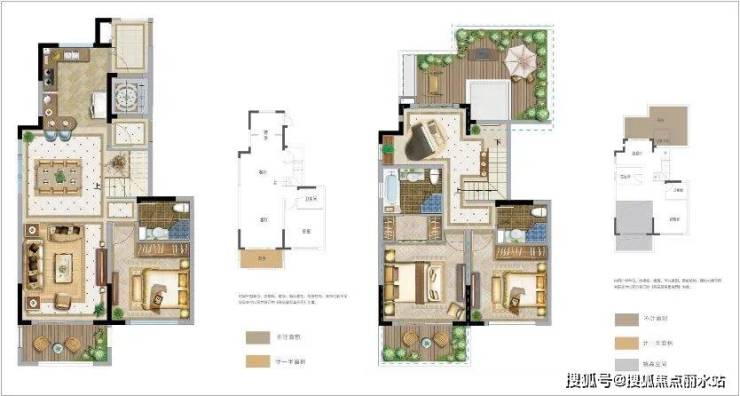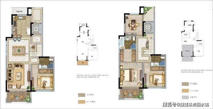 在房间的设计上,一层是餐客厅的设计、大横厅加一个卧室。另一层是三房两卫,两个卧室向南。3套房的设计,都标配了独立卫浴、步入式衣帽间,无论是从空间尺度还是房间分配上都能轻松碾压大平层,无论是三孩家庭还是三代同堂都可以欢聚一堂。