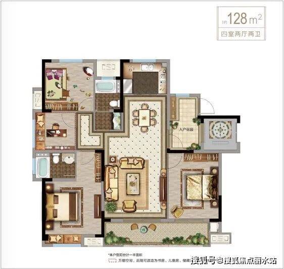 建筑面积约128㎡,4房2厅2卫
