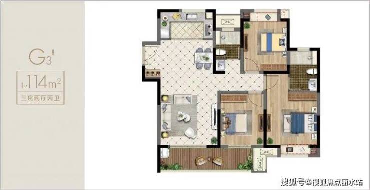建筑面积约114㎡,3房2厅2卫