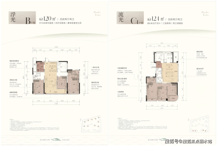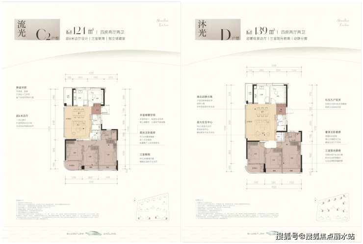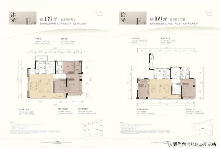 建面约139㎡4房2厅2卫户型为2梯3户的边套户型,分边厅、南厅两种户型;建面约169㎡4房2厅3卫户型为2梯2户的边套户型,该户型仅位于楼王一栋。