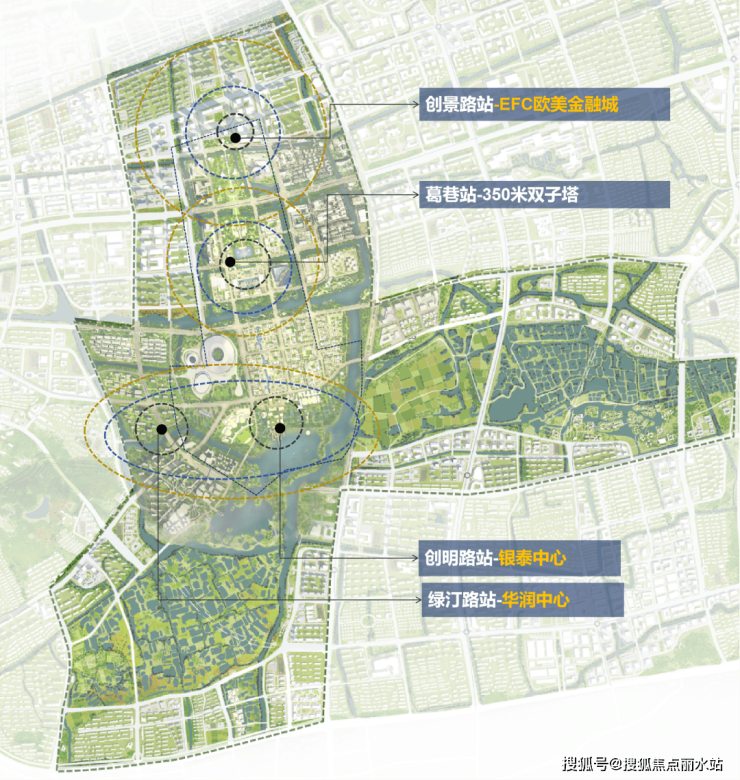国际数字商务区位于地铁5号线葛巷站,建筑面积约95万平方米,规划有高度350米的摩天大楼,融合商业、办公、酒店、高端住宅等多种业态,打造对标国际的都会中心。