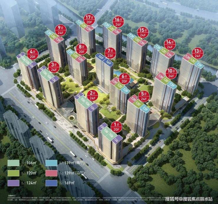 户型方面,项目规划户型建筑面积约106-120-124-139-169m²,其中,三房户型面积约106㎡,120至169m²为四房户型。