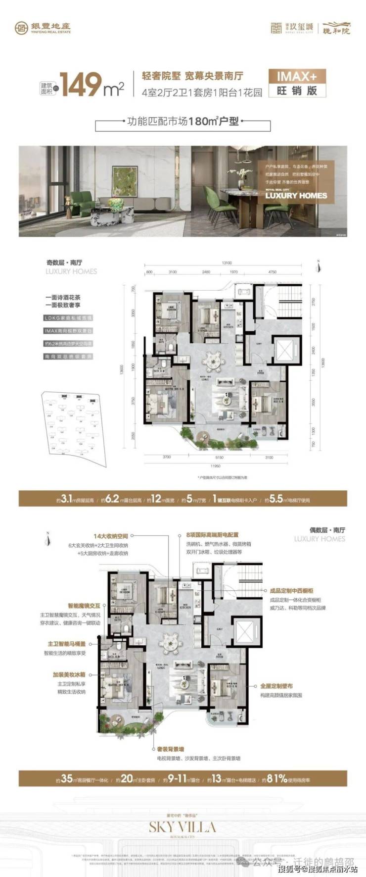 项目定位: 玖玺城巅峰收官之作,济南顶豪“奢侈品”,首创第四代空中院墅。(含样板间视频👇)