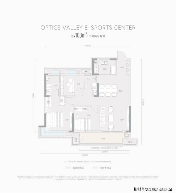 建面约108㎡的的边户,整体的格局跟98㎡的区别不大,都是动静分离,三房两卫的常规户型,但是边户的舒适度、隐私性都会高不少。所以如果预算稍微充足一点,可以选择这款户型。